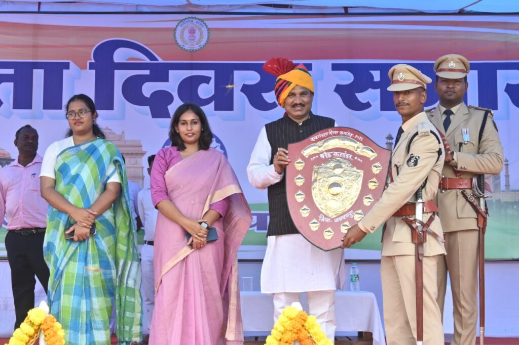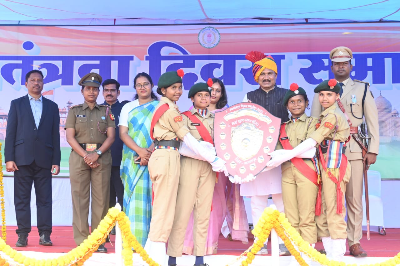 विधायक श्री विक्रम उसेण्डी ने ध्वजारोहण कर ली परेड की सलामी शहीद परीवार के परिजनों को मुख्य अतिथि ने शॉल और श्रीफल भेंटकर किया सम्मानित