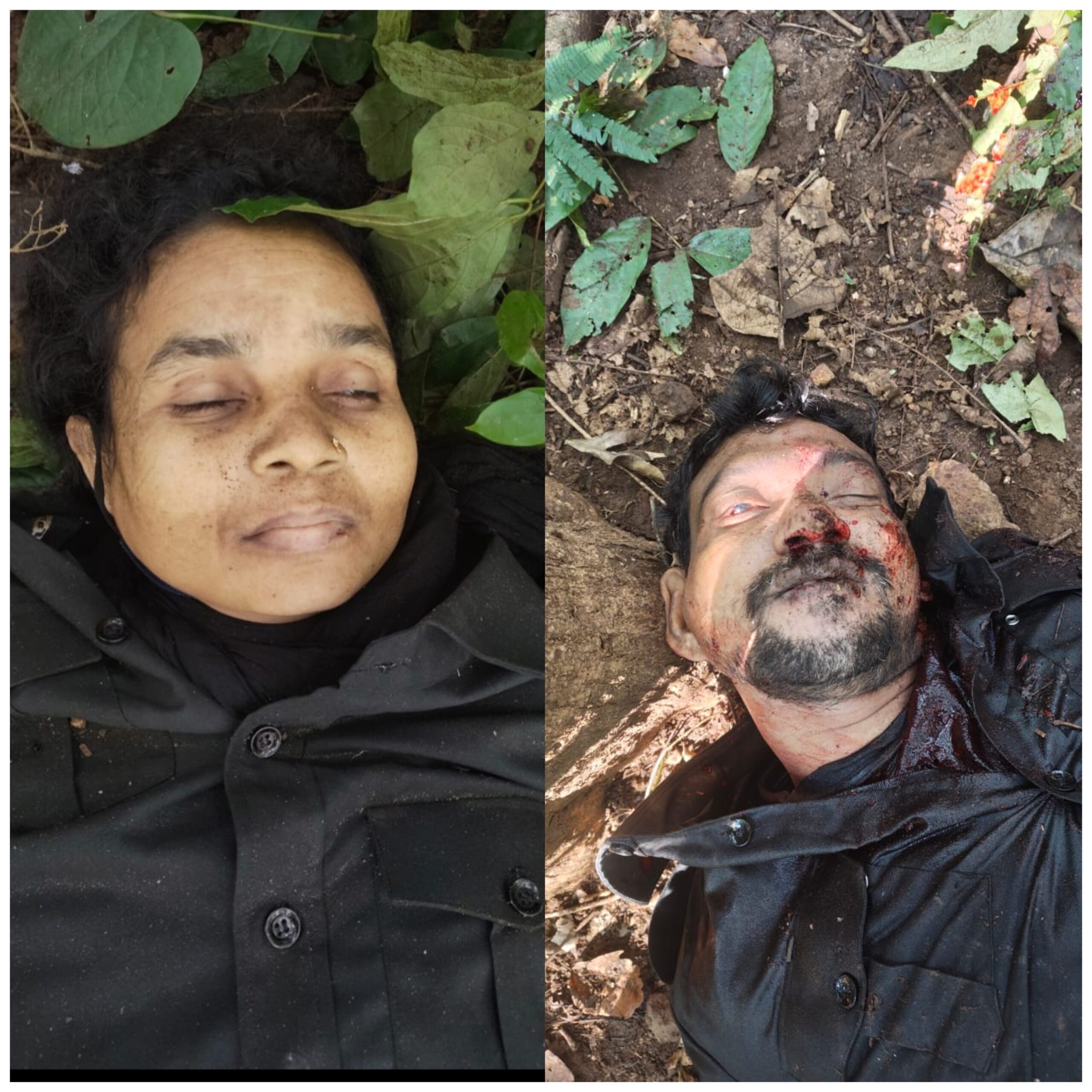 मुठभेड़ खत्म होने पर हिड़मा और राजे के शव जंगल से बरामद किए गए।