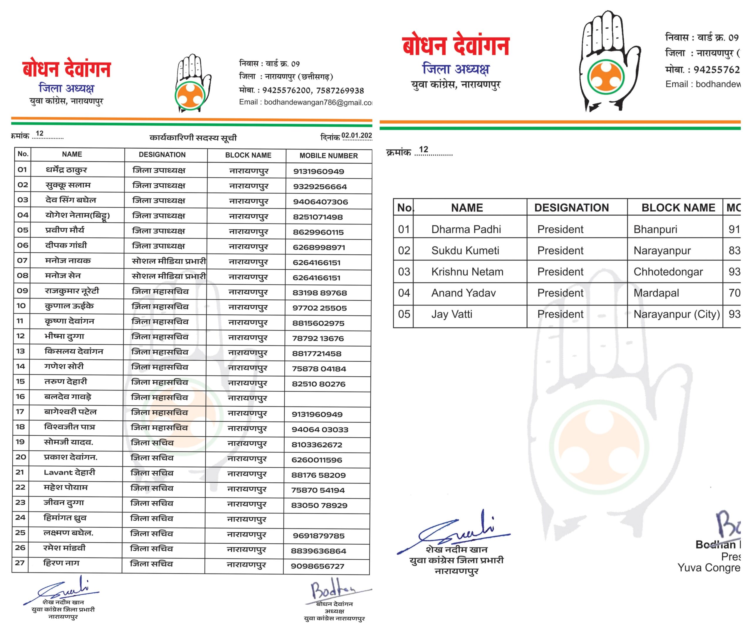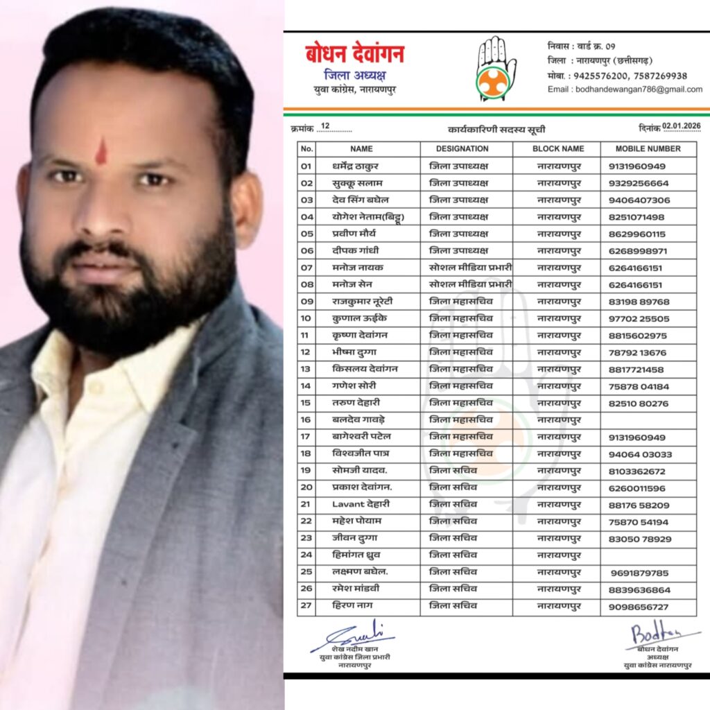 नारायणपुर जिले में यूथ कांग्रेस की नई नियुक्तियाँ, 32 पदाधिकारियों को मिली जिम्मेदारी